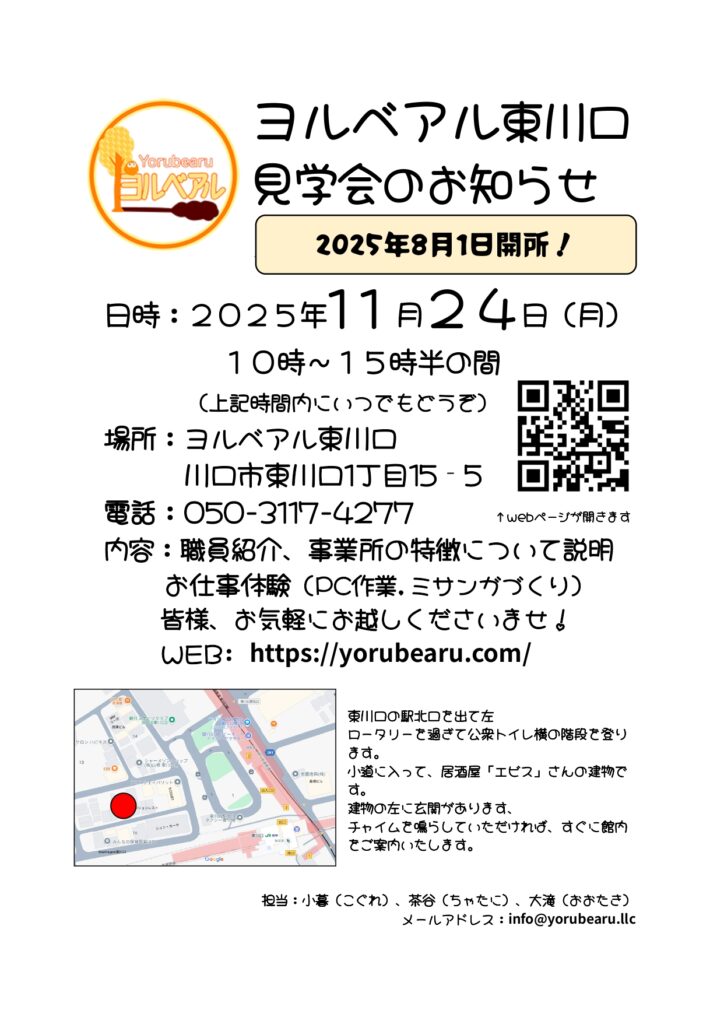 ご不明な点がありましたらまずはご連絡下さい。 サービスのお問い合わせ・見学などお気軽にお問い合わせください。