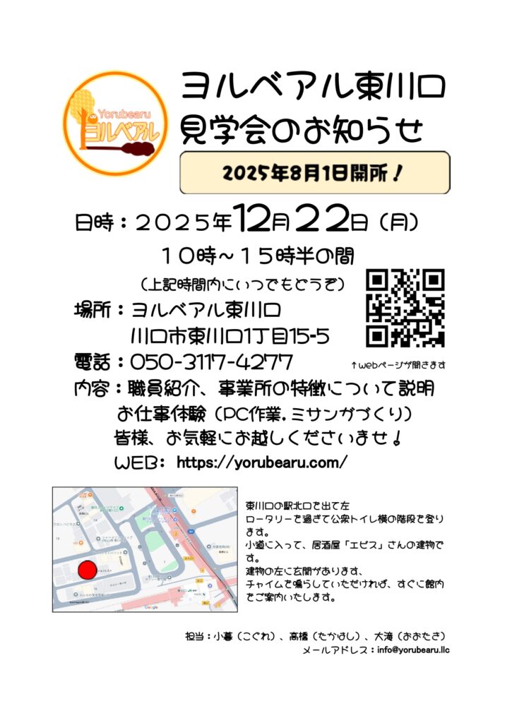 ご不明な点がありましたらまずはご連絡下さい。 サービスのお問い合わせ・見学などお気軽にお問い合わせください。